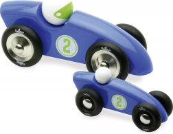 Cette voiture de course en bois bleue allie savoir-faire de qualité et style iconique de la marque VILAC. Les roues métalliques gainées de caoutchouc assurent un mouvement silencieux et fluide sur différentes surfaces, tandis que la finition laquée résistante protège le jouet des rayures.