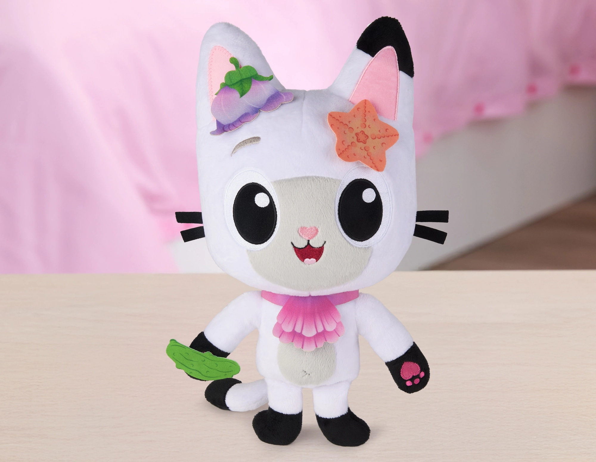 Cette peluche complète à merveille l’univers de GABBY'S DOLLHOUSE et peut réagir avec certains sets de jeu (p. ex. la grande maison de Gabby et le serre-tête à oreilles – vendus séparément). Grâce à sa taille d’env. 30 cm, les enfants l’emportent partout.