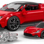 Grâce aux pièces métalliques et aux accessoires, vous pouvez personnaliser la voiture à votre guise : changez les jantes, peaufinez le look et profitez des portes ouvrantes ainsi que de la direction avec roues orientables. Le coffret inclut en plus un petit modèle de collection 1:64, idéal comme pièce d’exposition.