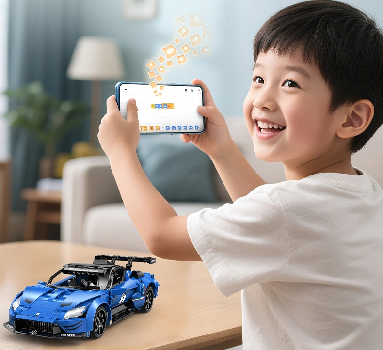 À l’échelle 1:14, le modèle atteint une vitesse allant jusqu’à 5,5 km/h et maintient une connexion stable sur environ 25 m. L’application propose 4 modes de pilotage (télécommande virtuelle, gyroscope, dessin de trajectoire, programmation par blocs type Scratch) pour adapter la conduite à votre style. Les détails imprimés soulignent l’aspect premium sans autocollants à coller.