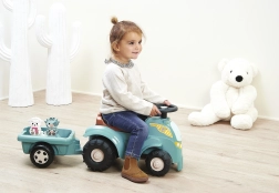 Ce robuste tracteur porteur pour enfants avec remorque de la marque ÉCOIFFIER, gamme ABRICK, est parfait pour les premières courses dans le salon comme au jardin. Grâce aux grandes roues et au siège confortable, la conduite est stable et sûre, tandis que la remorque détachable transporte briques et jouets préférés. La boîte de rangement sous le siège garde les petits objets toujours à portée de main.