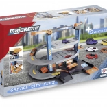 Découvrez le plaisir du jeu sur plusieurs niveaux avec le set de garage City Flex de la marque Majorette. Le parking à trois étages avec ascenseur, atelier/service, station-service et cinq petites voitures métalliques offrira aux enfants des heures de jeu sans fin. De larges rampes, des emplacements pour jusqu’à 8 véhicules et une imitation réaliste de rue garantissent un jeu d’action et créatif dès 3 ans.