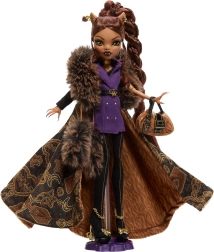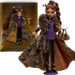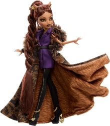 La poupée de collection stylée Monster High Clawdeen Wolf de la collection House of Wolf propose une tenue luxueuse pleine de détails : manteau jacquard à fourrure, robe violette, accessoires dorés et socle d’exposition. Grâce à sa structure articulée, elle permet des poses spectaculaires et convient parfaitement aux fans et collectionneurs.