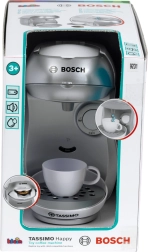 La cafetière pour enfants TASSIMO BOSCH, en blanc et argent, reproduit fidèlement un véritable appareil tout en étant entièrement sûre pour les enfants. Il suffit de verser de l’eau dans le réservoir, d’insérer une capsule sous le couvercle supérieur et d’appuyer sur le grand bouton start/stop – la machine déclenche un écoulement d’eau et ajoute des sons authentiques pour une expérience de jeu encore plus réaliste.