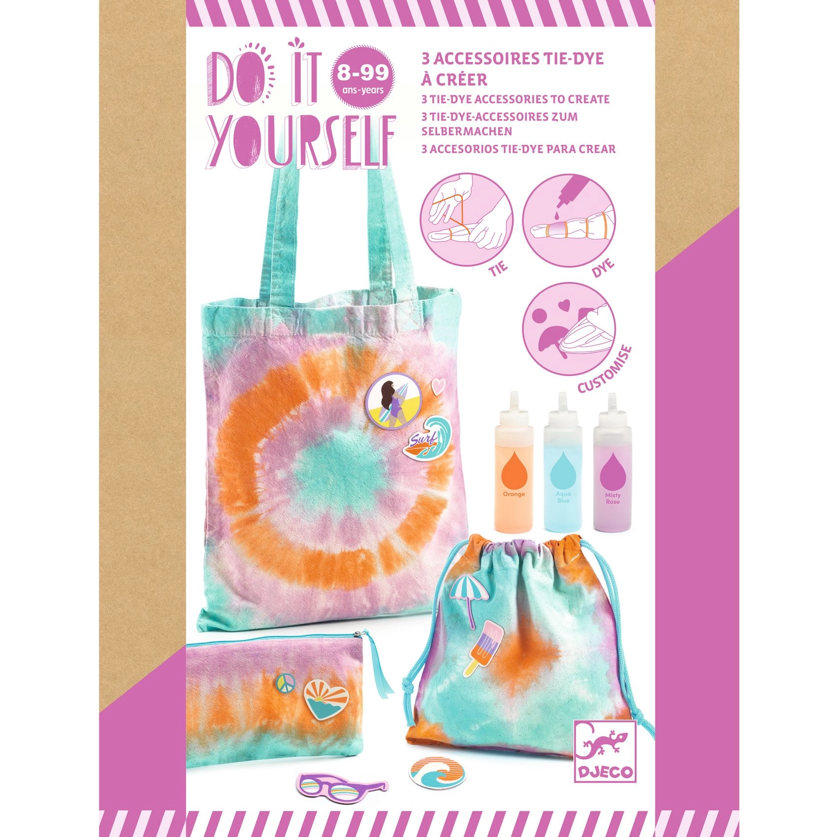 L’emballage contient tout le nécessaire pour bien démarrer : teintures, équipements de protection et manuel. Le résultat : des motifs colorés et durables qui embellissent sacs, pochettes et trousses. Une excellente idée pour un après-midi créatif à la maison ou un cadeau pour de jeunes designers.