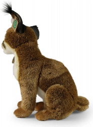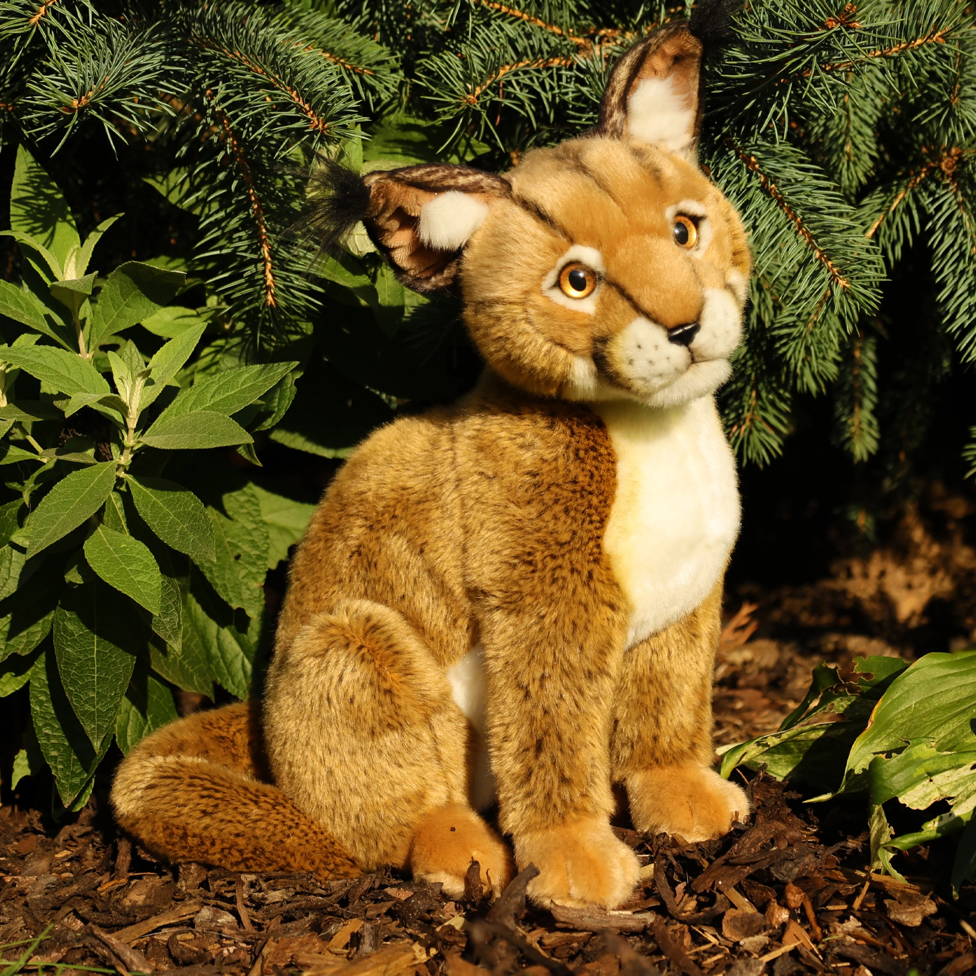 Le caracal en peluche RAPPA se distingue par ses détails fidèles – typiques touffes noires sur les oreilles, petit museau délicatement moucheté et fourrure brune douce avec un ventre blanc. Sa texture ultra-douce et chaleureuse invite aux câlins, tandis que sa position assise stable convient aussi à une exposition décorative.