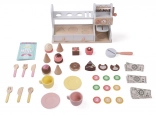 L’ensemble, fabriqué en bois durable dans de douces couleurs pastel, offre un riche assortiment : tasses avec soucoupes, cuillères, couverts, petits gâteaux, glaces et autres accessoires qui encouragent le jeu de rôle, le développement de la motricité fine, des compétences sociales et de l’expression orale.