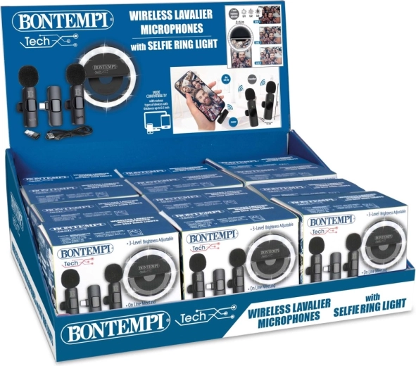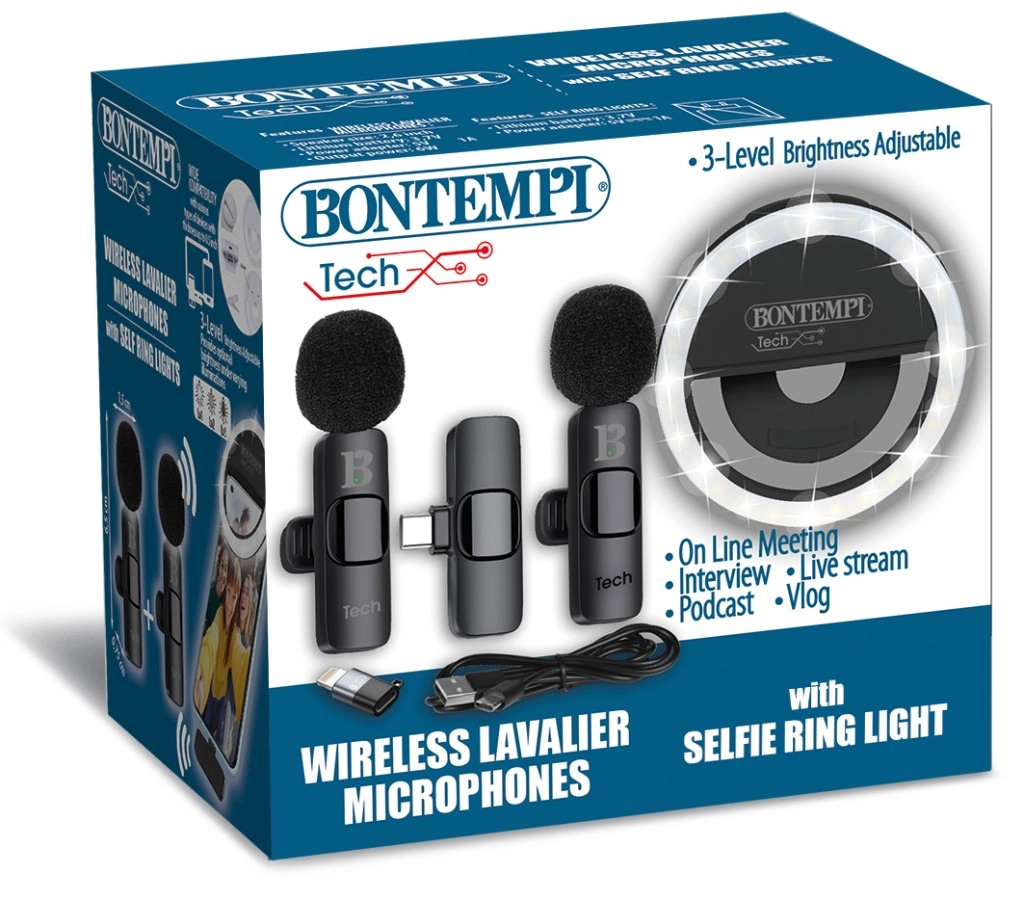 Ce kit pratique réunit un éclairage de qualité et un enregistrement audio sans fil en un seul ensemble. Le mini anneau LED se fixe facilement et, grâce à 3 niveaux de luminosité, assure un éclairage naturel lors des prises de vue avec la caméra frontale. Les deux micros cravate se pincent aux vêtements et transmettent la voix de manière fiable sans bruits ambiants, ce qui ravira vloggeurs, créateurs de Reels/Shorts et podcasteurs.