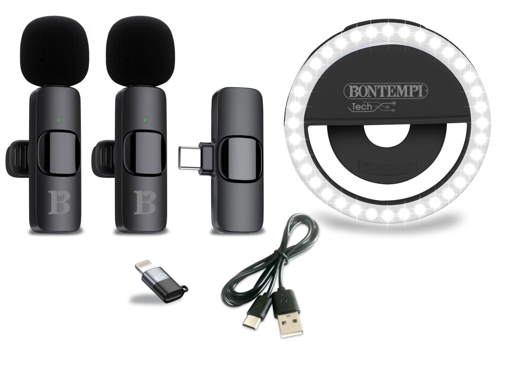 Kit audio et lumière (mini anneau LED + 2× micro cravate sans fil)