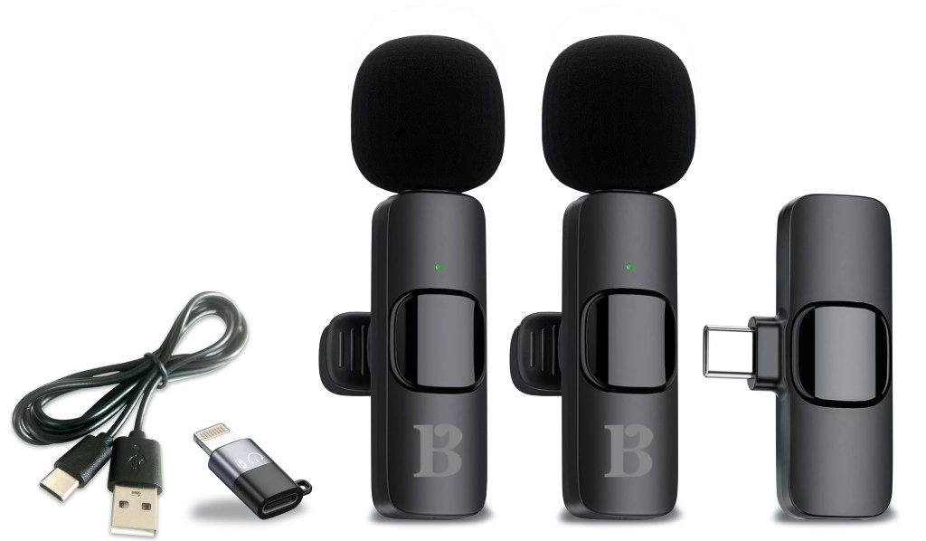 Les microphones sont compatibles avec les appareils USB‑C (smartphones et tablettes modernes), vous les branchez donc sans réglages complexes. Grâce à la conception sans fil, vous pouvez bouger librement devant la caméra, enregistrer des interviews ou du contenu à deux — son clair et fixation par clip pratique toujours à portée de main. Les dimensions compactes et le faible poids sont idéals pour la création en déplacement.