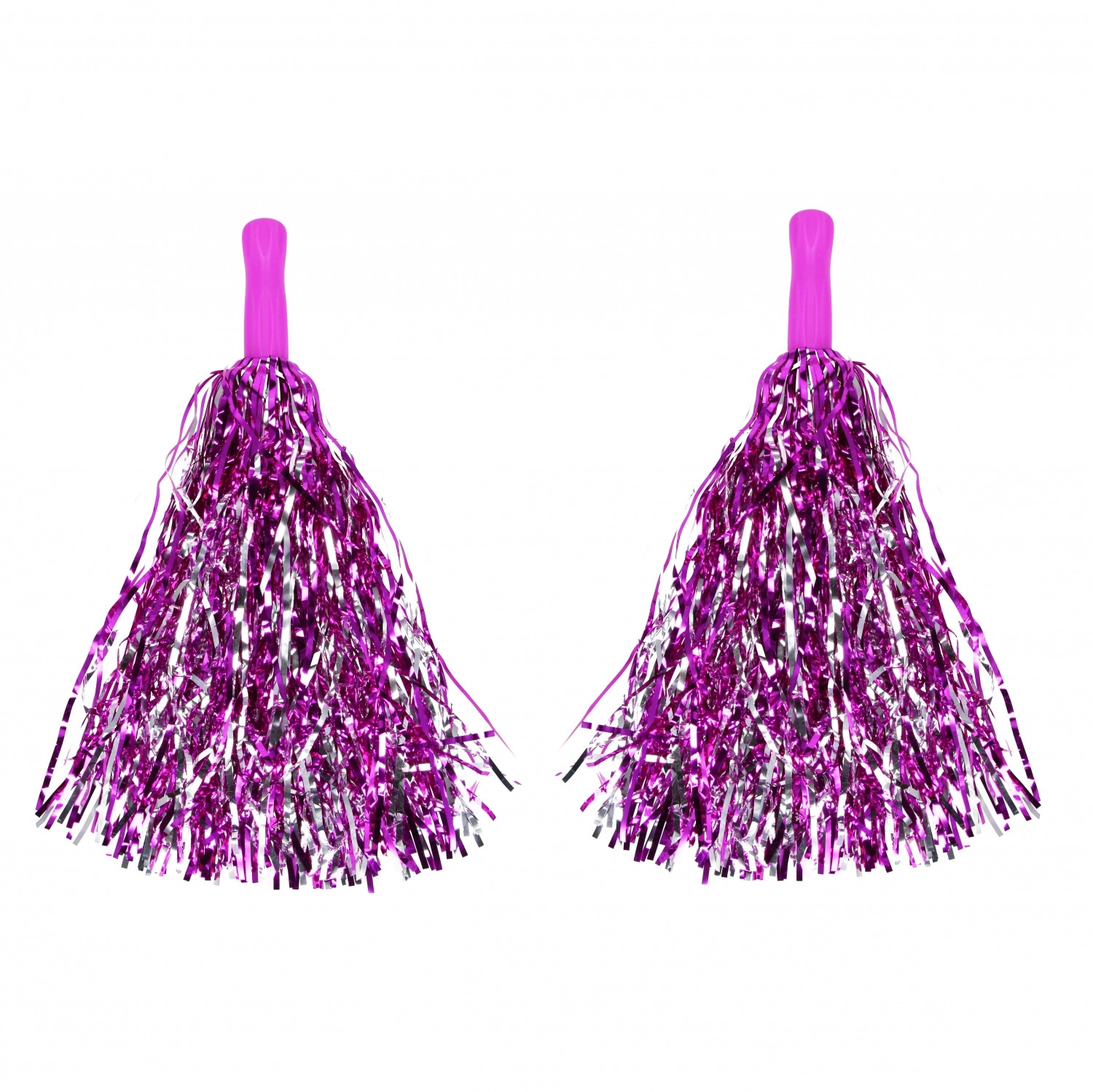 Ajoutez énergie et style à vos prestations. Ces pompons roses avec franges métalliques en rose et argent créent, lorsqu’on les secoue, un effet visuel saisissant, idéal pour les fêtes, les événements scolaires, les matchs sportifs et les chorégraphies.