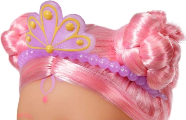 BABY born Petite princesse sirène est une poupée irrésistible avec de longs cheveux roses ornés d'un serre-tête violet. La queue de la poupée est magnifiquement colorée, scintillante et elle bouge au contact de l'eau, créant une atmosphère magique. Elle porte un maillot de bain à motif de coquillages qui s'harmonise parfaitement avec sa queue.