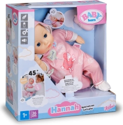 Adorable poupée BABY born Hannah de 36 cm, la camarade idéale pour jouer et câliner au quotidien. Elle offre un corps souple en tissu, des sons de bébé réalistes, sait boire au biberon avec des sons de succion, ferme les yeux et émet de douces sonorités apaisantes au moment du dodo. Le coffret comprend une tétine et un biberon.