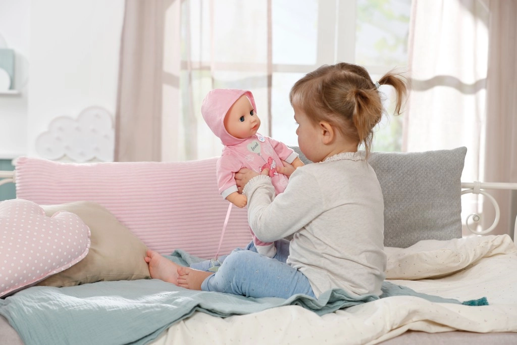 Découvrez la magie des jeux d’imitation avec la poupée BABY born Hannah – viens jouer. Grâce à son corps souple, elle est agréable au toucher, se blottit parfaitement dans les bras et invite aux câlins. Les enfants apprécieront l’interaction simple – la poupée émet de doux sons de bébé, produit de mignons sons de boisson lorsqu’elle boit au biberon, et, au moment de s’endormir, ronronne doucement et ferme les yeux.