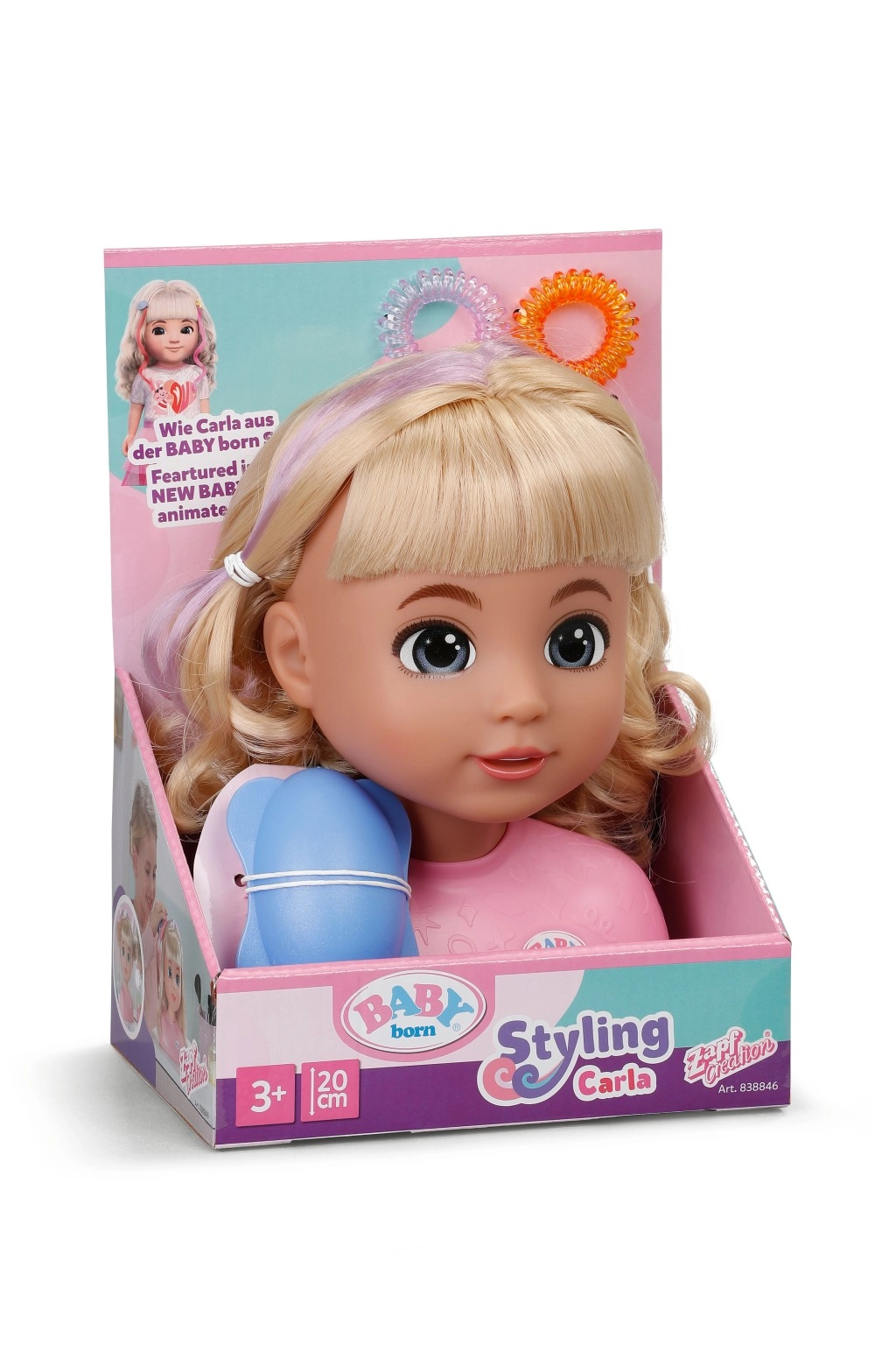 Découvrez le plaisir du coiffage avec la tête à coiffer BABY born Carla d’environ 20 cm de hauteur. Grâce à ses cheveux en nylon de haute qualité, elle se coiffe facilement, permet de tresser et de créer des coiffures créatives. Inclus des accessoires pratiques – brosse, barrettes et élastiques. Idéal comme jouet pour petites coiffeuses dès 3 ans.