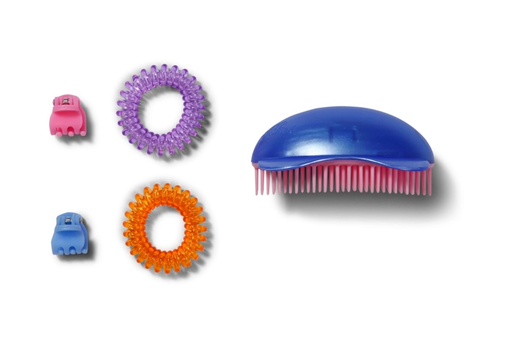 Le coffret comprend une brosse, des barrettes et des élastiques, pour commencer le styling dès le déballage.