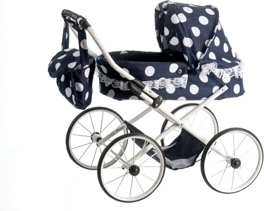 Poussette pour poupées Ewa rétro, noire à pois et dentelle