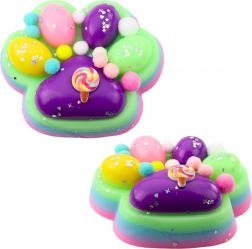 Libérez la tension avec le jouet anti-stress Squishy XXL en forme de patte de chat, à la fois ludique et efficace. Grâce à sa texture douce et souple, il offre une pression agréable qui aide à la concentration et à la relaxation. Son look original est rehaussé de perles colorées, de confettis scintillants et d’une petite décoration en forme de sucette à la surface.