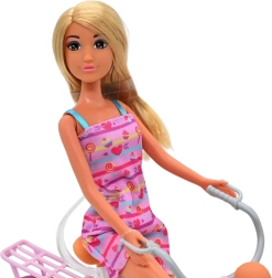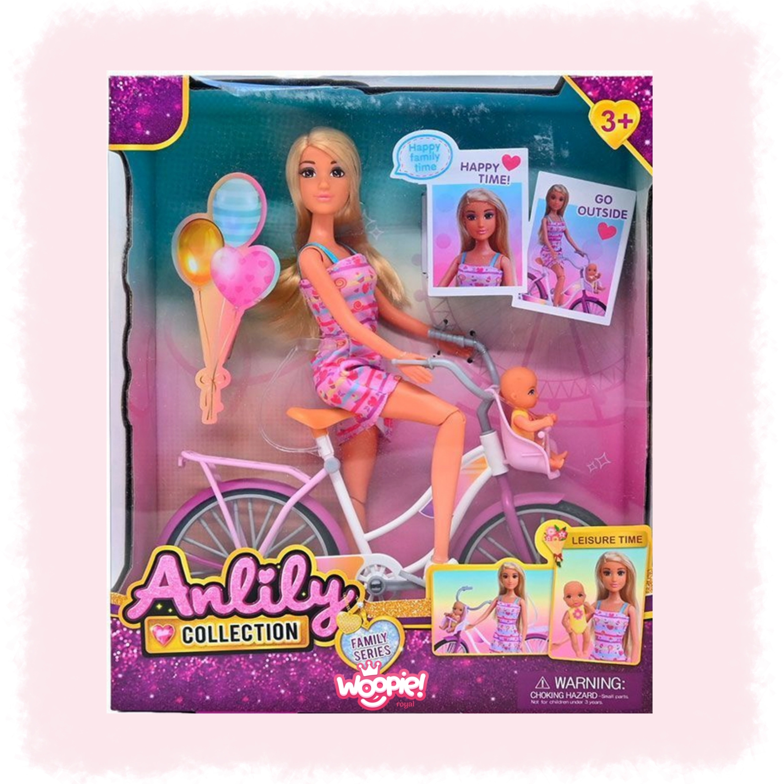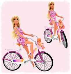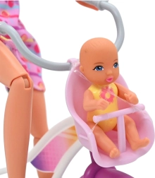 Ce set maman-poupée avec bébé et élégant vélo de ville est un excellent choix pour les petits fans de jeux de rôle. La poupée, aux longs cheveux coiffables, possède des membres articulés, le bébé est prêt à être choyé et le vélo est équipé d’un siège enfant pour des balades à deux. Une fabrication de qualité et sûre, avec bords arrondis, garantit un jeu confortable et sécurisé.