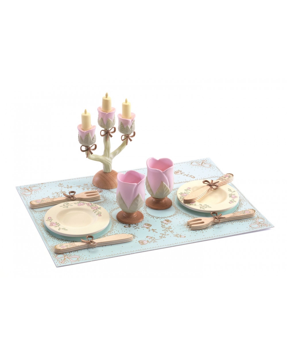 Ce set en bois peint de DJECO transforme n’importe quelle cuisine pour enfants en salle à manger royale. Les enfants peuvent s’exercer à l’art de la table, à la politesse et à la coopération, tout en développant leur motricité fine et leur imagination. Les motifs délicats de princesses et le travail soigné font de cet ensemble un très beau cadeau.