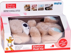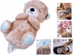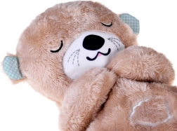 Douce et câline, la loutre imite un rythme de respiration apaisant – son ventre se soulève et s’abaisse délicatement, procurant aux enfants un sentiment de proximité et de sécurité. La lumière intégrée au niveau du ventre s’intensifie et s’atténue en douceur pour ne pas perturber, mais au contraire apaiser l’endormissement. Bruit blanc, sons prénataux, battements de cœur et tendres berceuses sont disponibles.