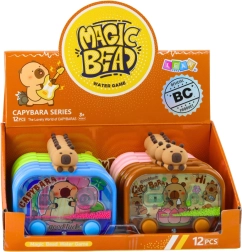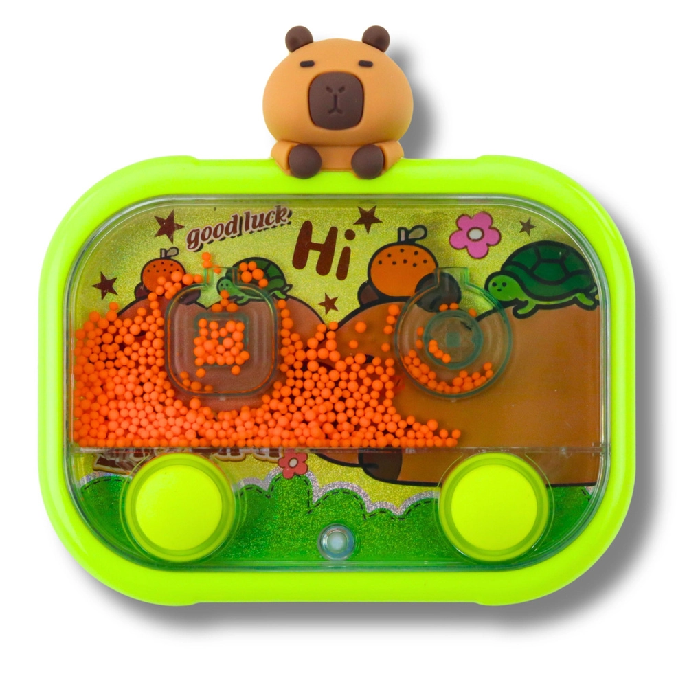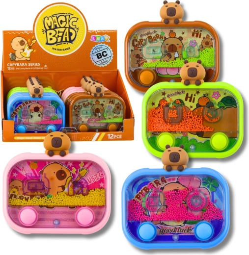 Découvrez le charme du jeu d’eau classique dans une version colorée au motif capybara. Le jeu est mécanique – il suffit d’appuyer sur les boutons pour mettre le flux d’eau en mouvement et guider avec précision les billes vers leurs supports. L’éclairage activé en pressant la capybara illumine l’intérieur du jouet et rend l’expérience encore plus attrayante, surtout au crépuscule.