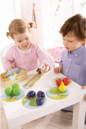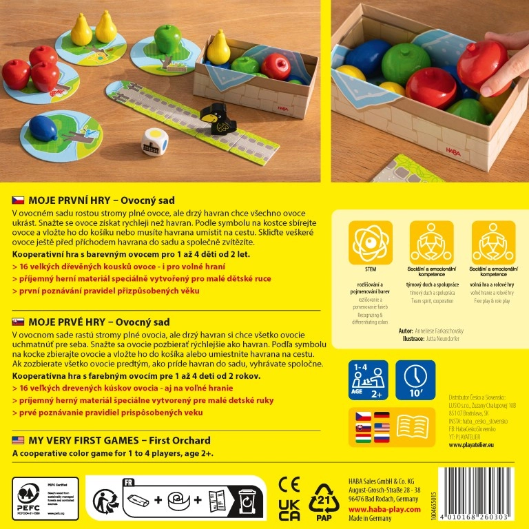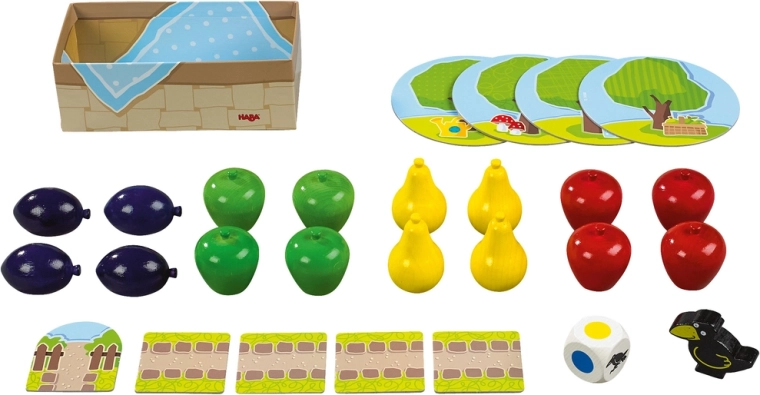 L’objectif est de récolter ensemble toutes les pommes, poires, prunes et cerises avant que le corbeau n’atteigne le verger. Chaque tour compte – les enfants exercent une stratégie d’équipe et apprennent en jouant.