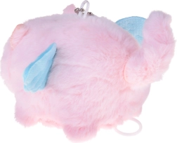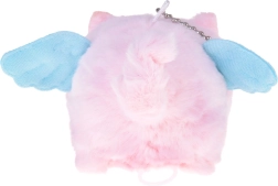 Un doux “duvet” rose, des yeux brodés et de petites ailes bleues en font à la fois un accessoire craquant et un petit doudou.
