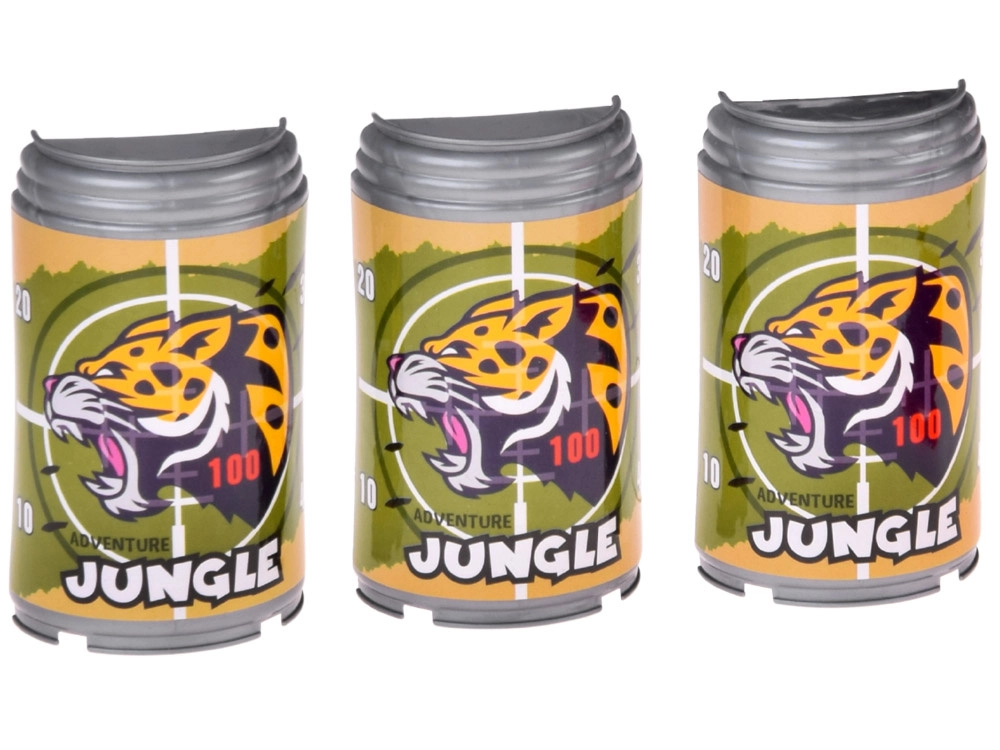 Trois « canettes » légères avec l’imprimé ADVENTURE JUNGLE et des zones de points transforment l’entraînement au tir en un jeu amusant pour un ou plusieurs joueurs.