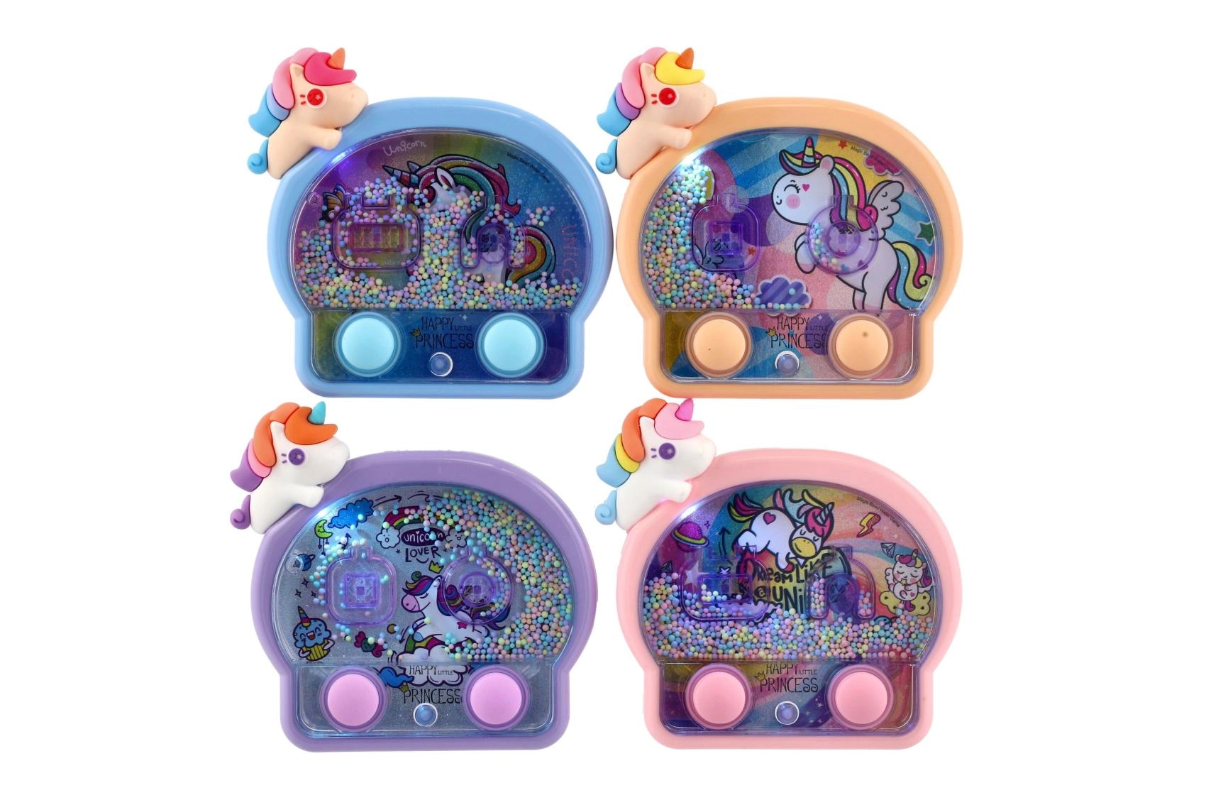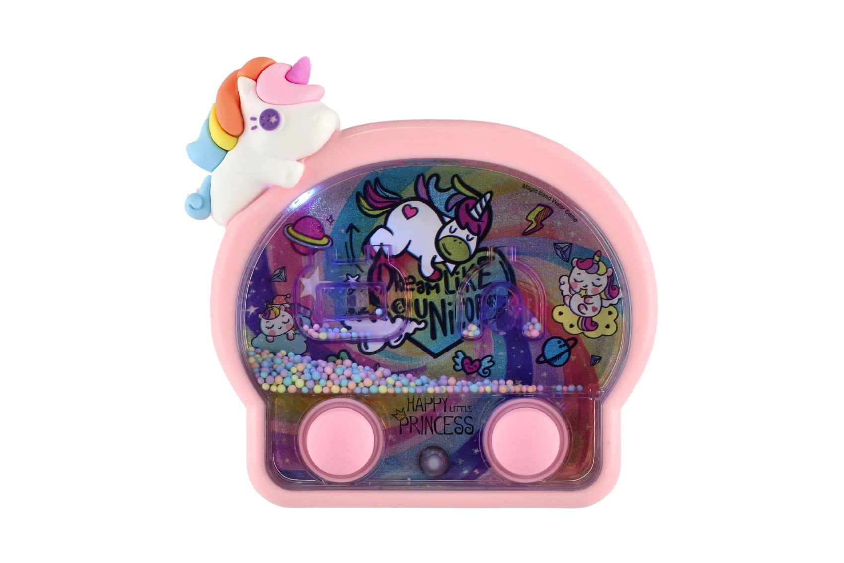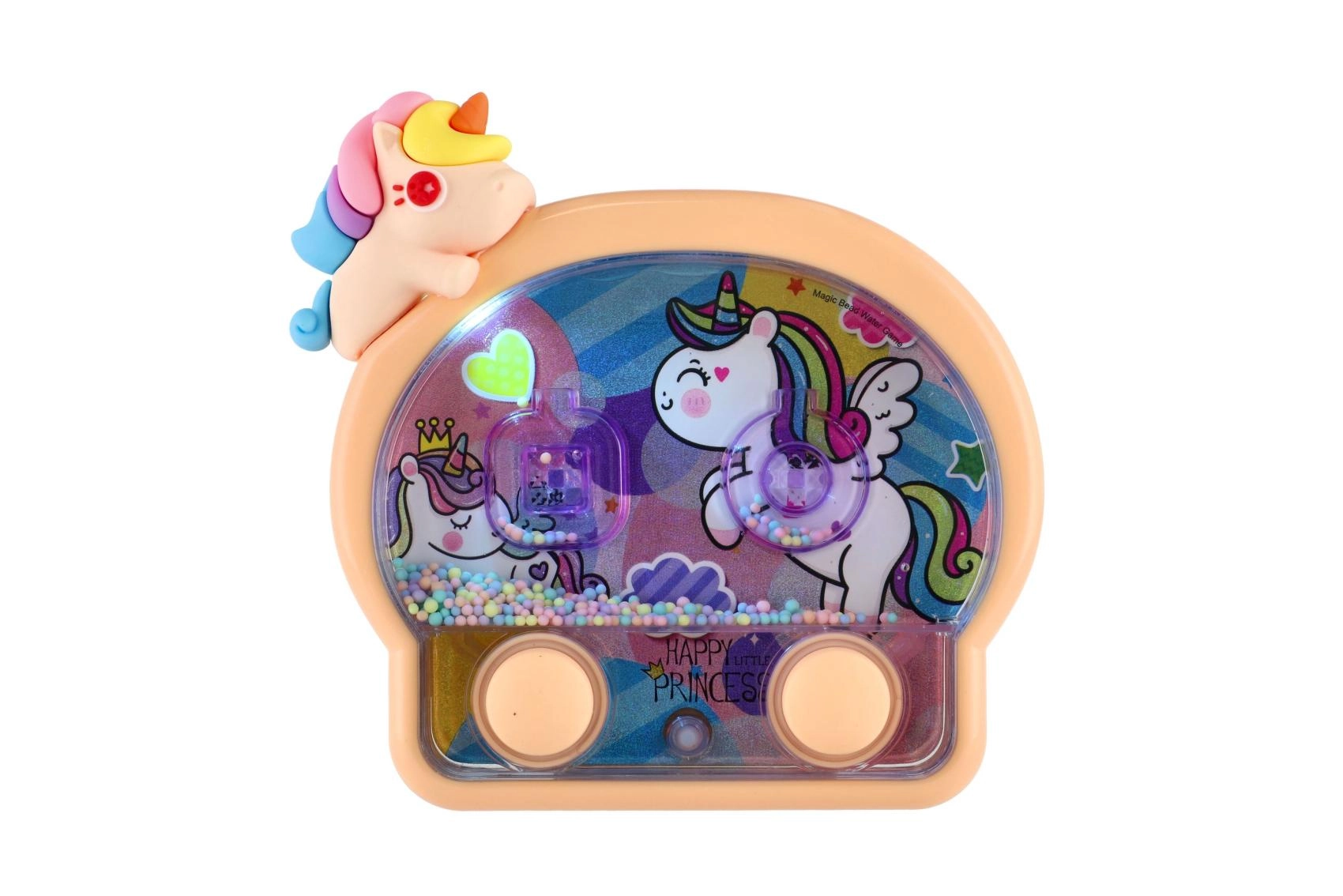 Ce mignon jeu d’anneaux aquatique au design licorne est le compagnon idéal en voyage comme dans la chambre d’enfant. La commande simple à deux boutons met l’eau en mouvement et aide les enfants à viser précisément les anneaux sur les cibles. Les petites lumières néon soulignent l’aspect féerique et transforment chaque partie en un petit moment festif.