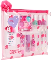 Adorable set de maquillage pour enfants dans une trousse transparente, idéal pour les petites coquettes. Il contient tout le nécessaire pour un maquillage ludique et la décoration des ongles : 3 vernis à ongles, un gloss, un baume à lèvres, 3 applicateurs et des autocollants pour ongles. La trousse pratique avec pom‑pom est à la fois décorative et garde tous les accessoires cosmétiques bien rangés.