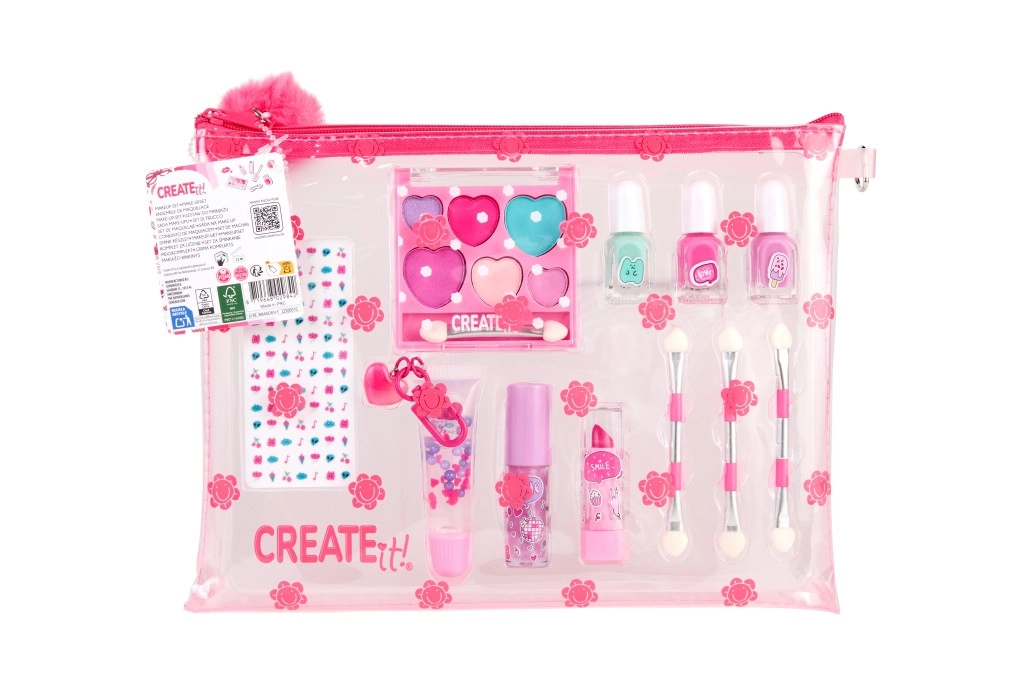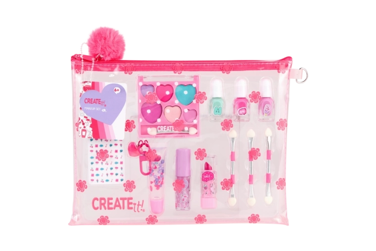 Ce set de maquillage ludique pour enfants, dans une trousse rose transparente à motif floral, offre une manière sûre et amusante de découvrir l’univers du maquillage. Grâce au rangement clair, chaque article a sa place et les enfants peuvent emporter facilement leurs produits de beauté partout.