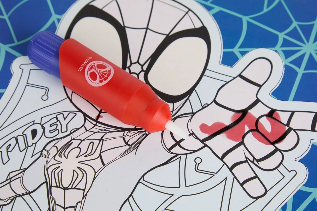 Le livre de coloriage à l’eau Spidey offre aux enfants des heures de création sans la moindre salissure. De l’eau suffit – pas de peintures ni de feutres. Une fois l’eau appliquée, des couleurs vives et des illustrations des héros préférés de l’univers Spidey apparaissent sur les pages. Quand l’image sèche, les couleurs disparaissent et les enfants peuvent recommencer encore et encore.
