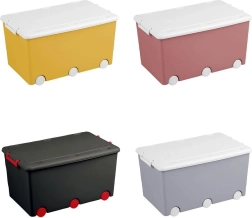 Gardez la chambre d'enfant ordonnée et stylée avec cette grande boîte à jouets sur roulettes. Elle offre un volume de 60 l, des dimensions de 57 × 36 × 29 cm et est fabriquée en plastique de haute qualité certifié. Grâce à ses 6 roulettes, elle se déplace facilement, la fermeture latérale à 2 pressions assure un rangement sécurisé et la possibilité d'empilage permet de gagner de la place.