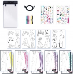 Ce kit stylé est idéal pour les jeunes passionnés de mode qui veulent créer comme de véritables designers. La tablette lumineuse facilite le décalquage et la superposition des pochoirs, pour des croquis beaux et nets en un rien de temps. Grâce au contenu riche, vous pouvez combiner différentes silhouettes, accessoires et couleurs afin de créer des collections uniques.