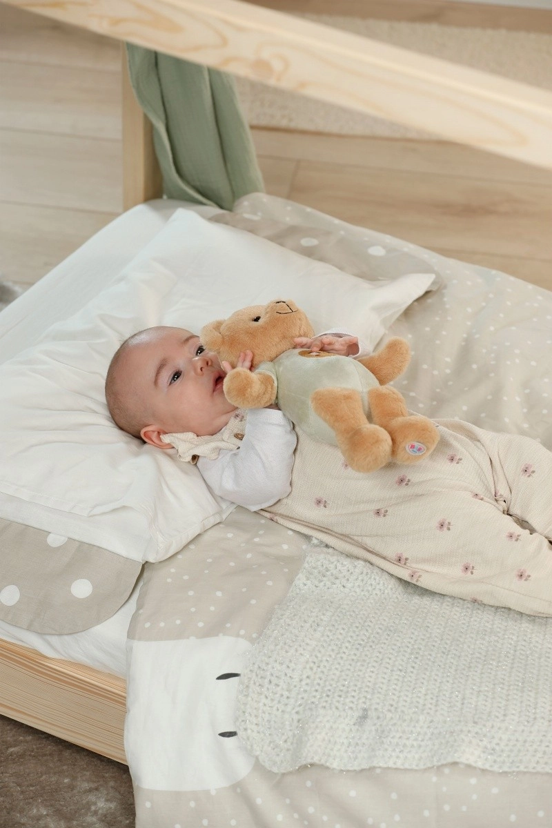 L’ourson en peluche BABY born Teddy est conçu pour les petites mains – léger, moelleux et parfaitement câlin. Grâce à sa taille compacte de 26 cm, les enfants le saisissent facilement et le gardent près d’eux pour s’endormir ou jouer dans la journée. Les tons pastel harmonieux ont un effet apaisant et s’intègrent joliment dans la chambre d’enfant.