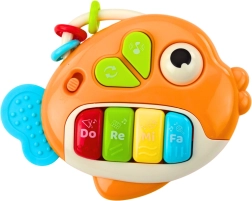 Le piano musical poisson est un premier jouet musical idéal pour les tout-petits. Les quatre touches clairement identifiées Do, Ré, Mi, Fa jouent, lorsqu’on appuie dessus, de joyeuses mélodies ainsi que des notes individuelles, développant naturellement le sens du rythme et la perception des sons. Sa forme ergonomique tient bien dans les petites mains, tandis que son corps léger et ses bords lisses et arrondis assurent une utilisation sûre et confortable.