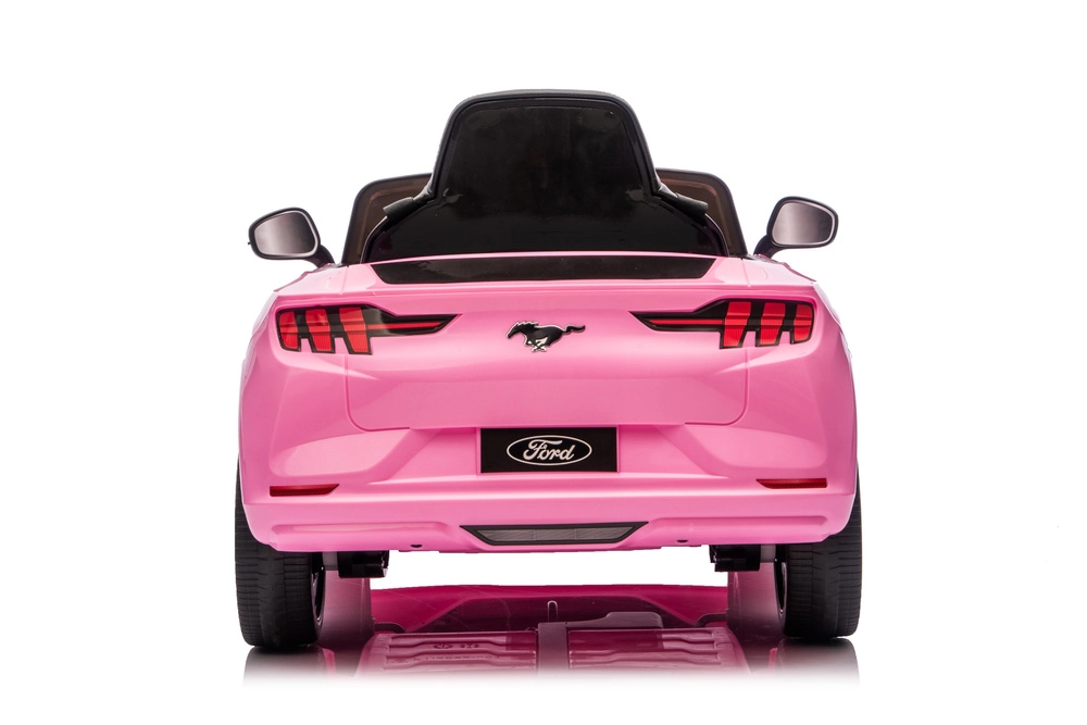 La voiture électrique rose Ford Mustang Mach‑E séduit par son design moderne et ses détails soignés – des phares LED aux roues sport en passant par un cockpit réaliste avec volant doté d’un klaxon. Une construction robuste et des plastiques de qualité garantissent stabilité et confort de conduite.