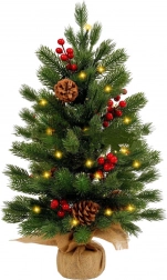 Petit sapin de Noël artificiel de table avec baies rouges et lumières LED 60 × 20 cm