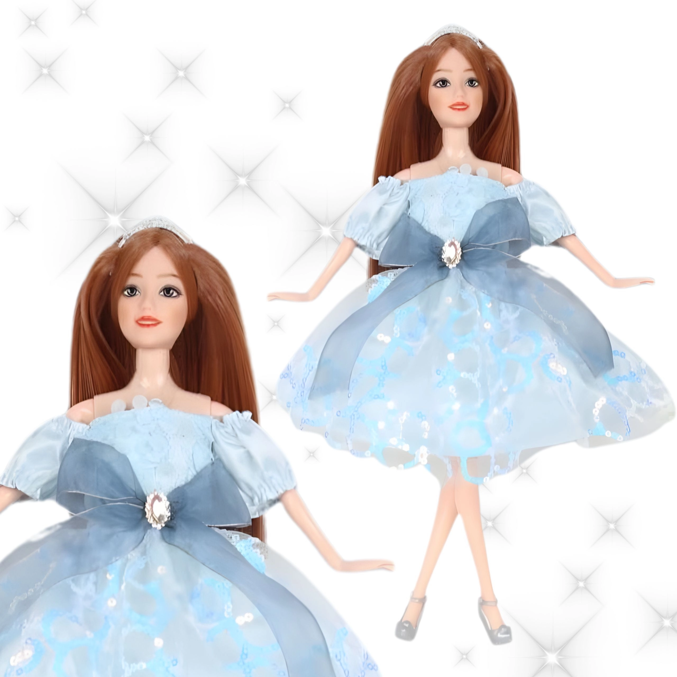 Découvrez la magie de la mode avec la poupée Emi de la marque Woopie Royal. La robe azur scintillante avec tulle délicat, nœud et couronne royale souligne son look élégant. Les bras et jambes articulés permettent diverses poses et une mise en scène créative, transformant chaque jeu en aventure magique.