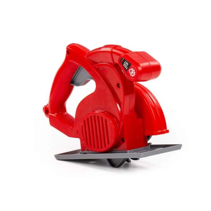 Imite fidèlement une vraie scie circulaire – y compris la semelle, le carter de lame et la poignée ergonomique. Parfait pour les jeux de rôle des petits bricoleurs.