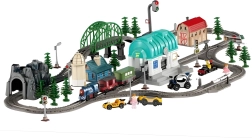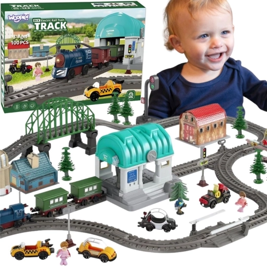 WOOPIE circuit de train électrique XXL avec gare et petite ville, 108 pièces