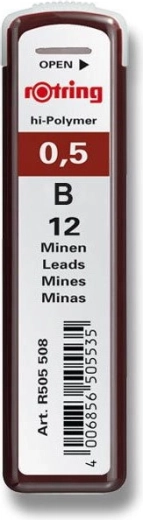 Mines de rechange de haute qualité pour porte‑mine, diamètre 0,5 mm, pour une écriture précise et nette. L’emballage pratique de 12 pcs assure une longue durée à la maison, à l’école comme au bureau.