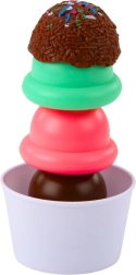 Créez votre propre bar à glaces ! Les enfants peuvent combiner les couleurs, empiler les boules, servir dans des gobelets, des cornets ou en esquimaux. Le set est idéal pour le jeu en solo comme en groupe, et développe la créativité, la coopération et la coordination.