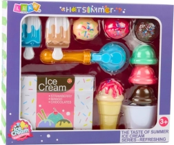 Set créatif de crème glacée pour enfants avec 14 pièces offrant des heures de jeu pour créer des glaces, des desserts et des friandises. Grâce au plastique léger et résistant, aux formes sûres et aux couleurs réalistes, il stimule l’imagination, la motricité fine et le jeu de rôle en glacier.