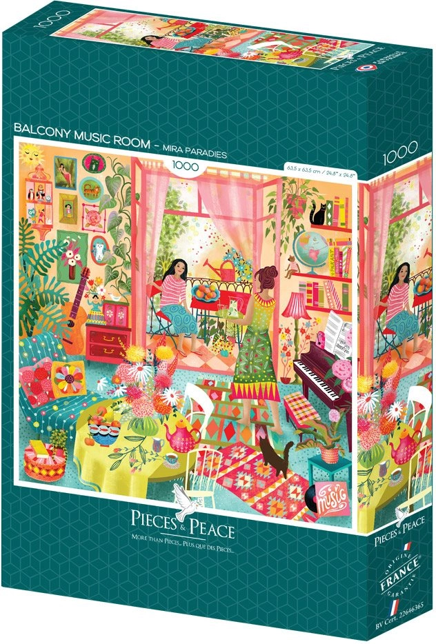 Accordez-vous du temps et plongez dans un univers de musique et de bien-être. Les puzzles carrés au motif de salle de musique et de scène de balcon apportent une atmosphère harmonieuse et une impression de qualité aux couleurs nettes. Une fois assemblée, l’image mesure environ 63,5 × 63,5 cm, idéale pour être mise en valeur au mur ou comme décoration sur une étagère.