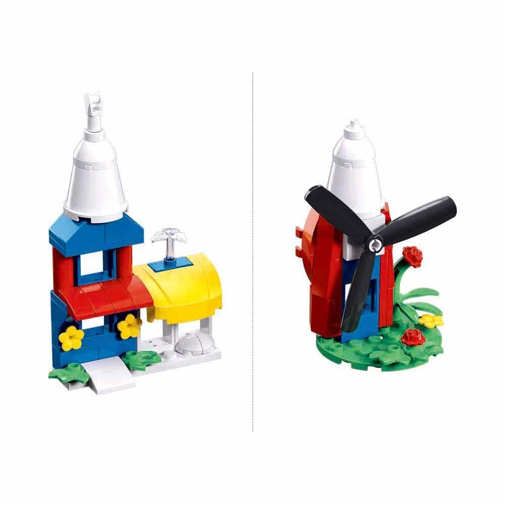 À partir d’un seul set, assemblez des modèles variés — une maisonnette avec des fleurs ou un moulin à vent avec pales rotatives. Un plaisir créatif dont on ne se lasse pas.