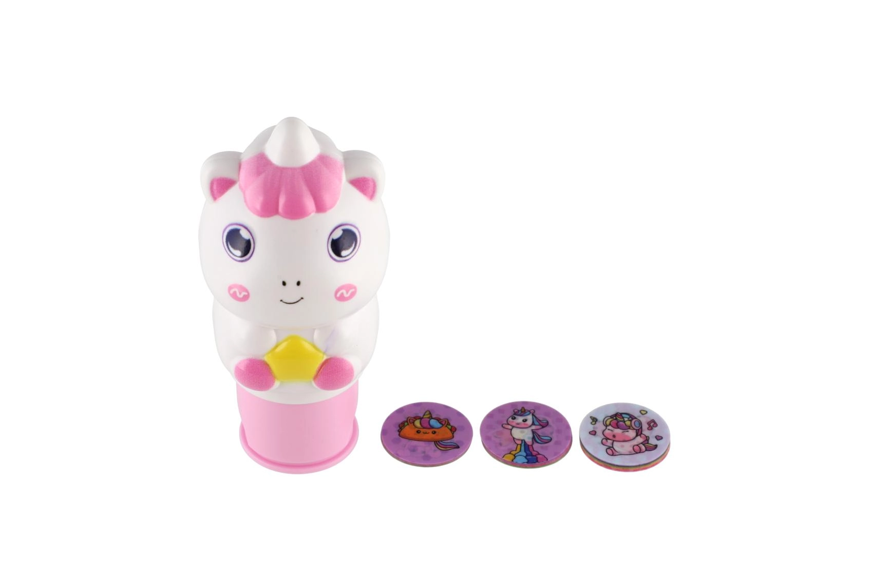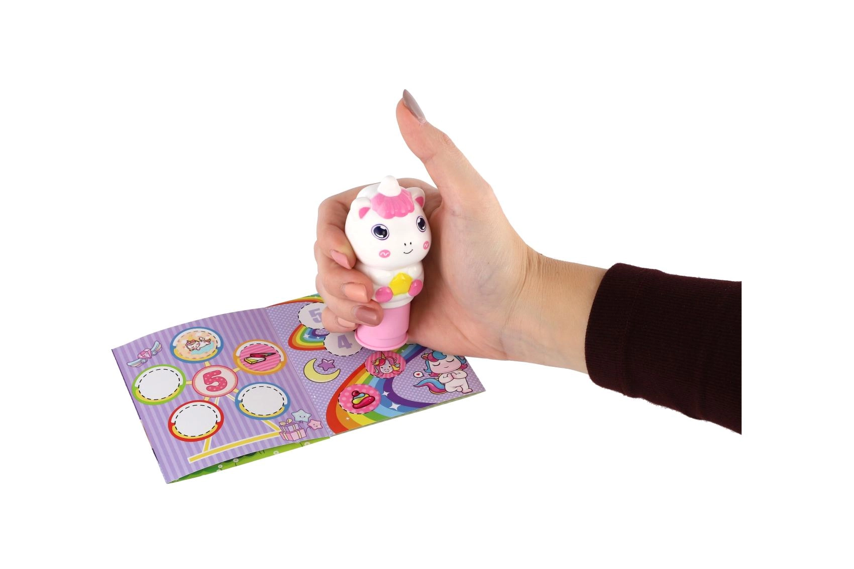 Adorable tampon pour enfants en forme de licorne qui combine tamponnage et autocollants aux motifs magiques. Grâce aux disques interchangeables avec des illustrations de licornes, il est parfait pour la création créative à la maison, à l’école et en maternelle.