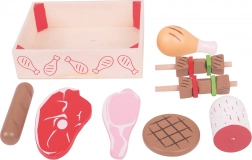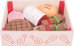 Cette caisse en bois de qualité est pleine de spécialités “carnées” que les enfants connaissent de la cuisine. Ils y trouveront du bacon, un steak, une saucisse, du poulet et d’autres pièces avec lesquelles ils prépareront facilement un festin pour toute la famille. Après le jeu, tout se range dans la boîte pratique – l’ordre est vite fait.