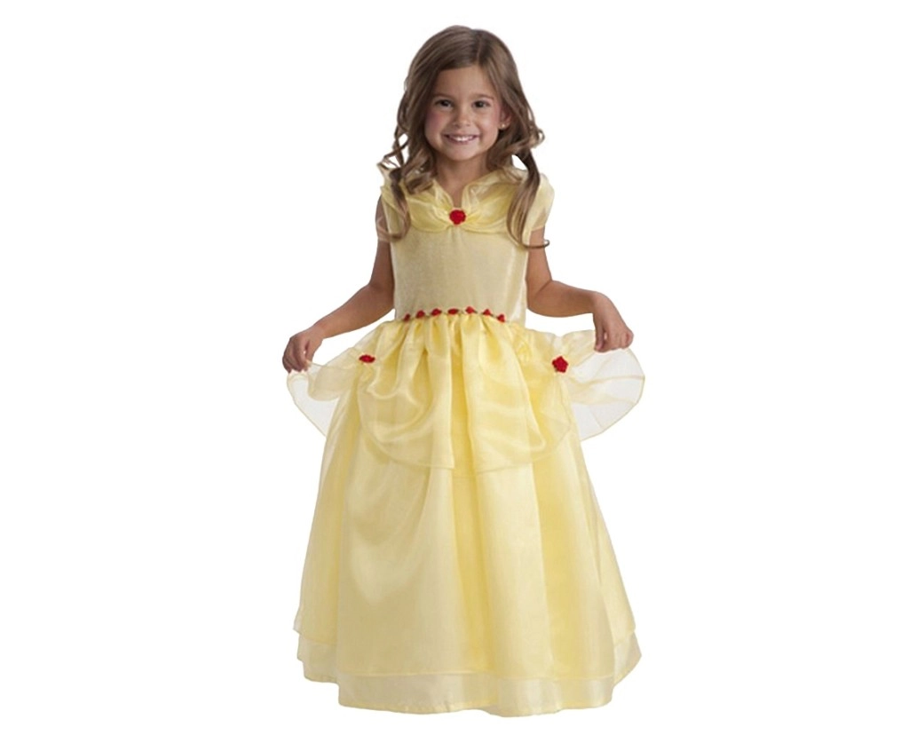 Ce costume ravissant, inspiré d’une héroïne de conte de fées, transformera chaque petite fille en véritable princesse. La robe d’un jaune riche possède une jupe multicouche pour un beau volume, des surpièces en mousseline et des applications florales pour une allure festive.